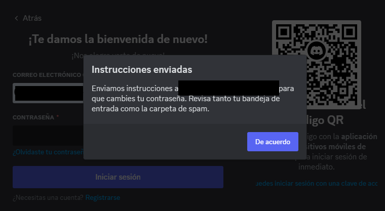 - Discord enviará un correo electrónico con un enlace para restablecer la contraseña.