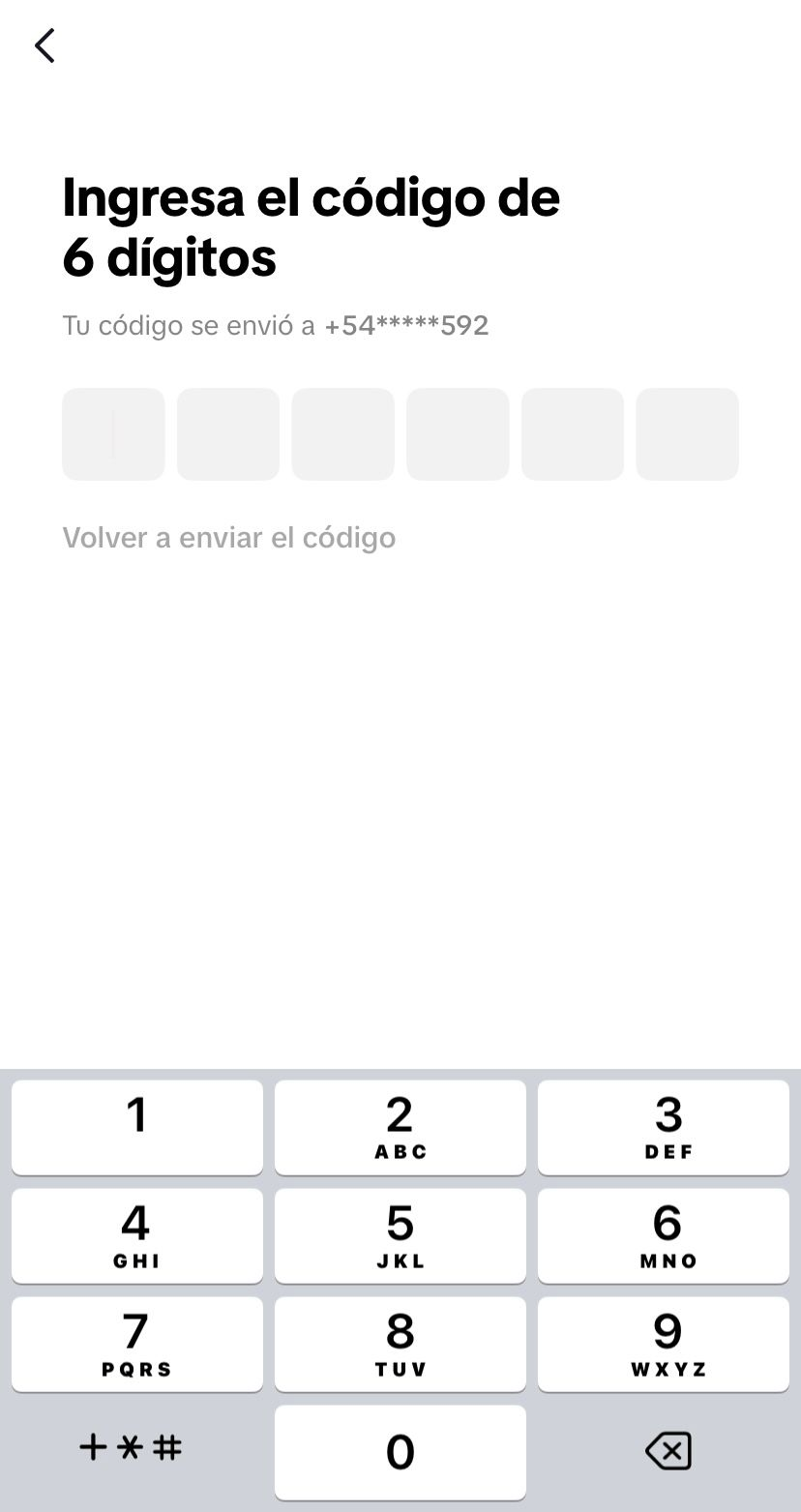6. En el caso de tener un numero de telefono vinculado, se te pedira un codigo de 6 digitos enviado en el momento para autenticar.