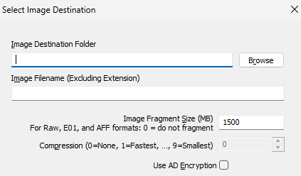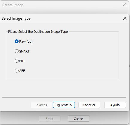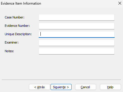 - Descripción: Se puede añadir una descripción o notas relevantes a la imagen forense que se está creando.