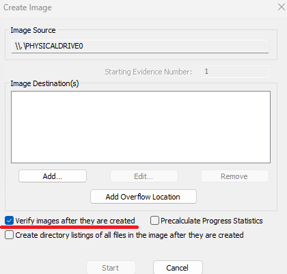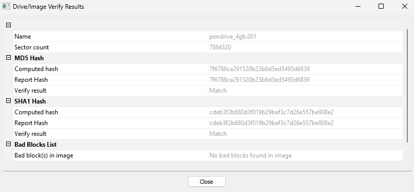 - Verificación automática: Al finalizar la creación de la imagen, FTK Imager llevará a cabo una verificación de la integridad de la imagen creada para asegurar que no haya sufrido alteraciones.